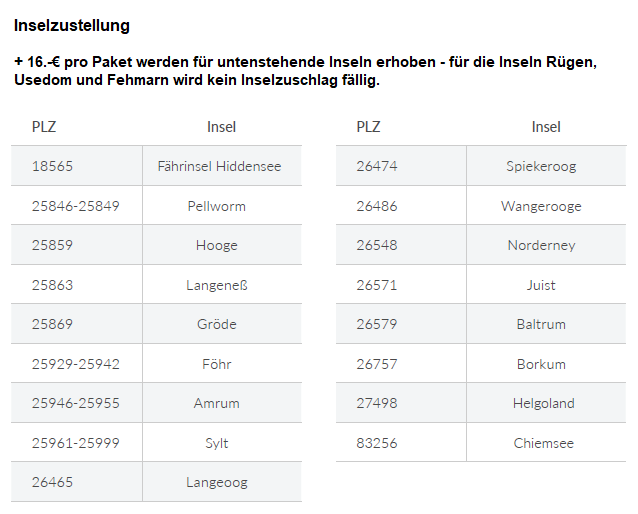 - in folgende EU-Länder mit DPD oder HERMES kostenpflichtig, bitte mit schriftl. Anfrage